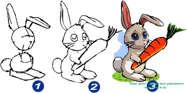 Как пошагово рисовать кролика