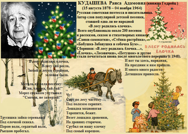 Слова этой песни уже давно стали классикой. Многие называют их даже народными. Но у «Ёлочки» есть мама. Согласно этой детской книге её автор Раиса Адамовна Кудашёва.